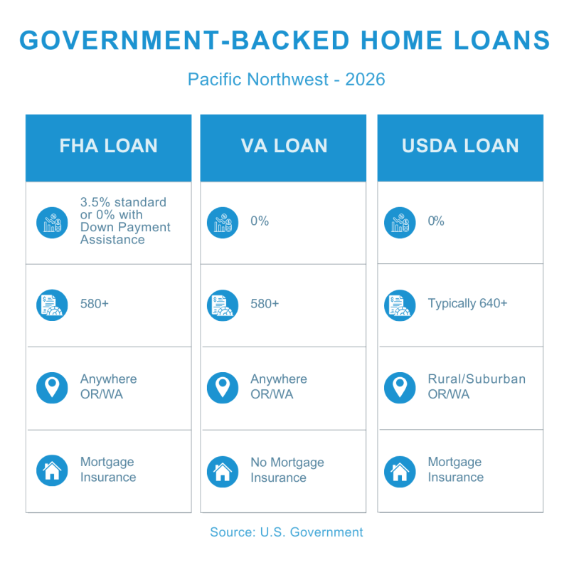 This guide breaks down exactly how FHA, VA, and USDA loans work in Oregon and Washington, what you need to qualify, and how to choose the best fit for your situation.