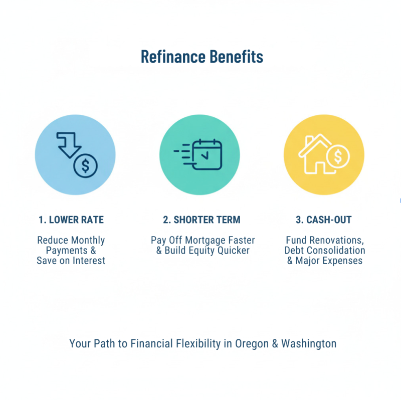 When you refinance in Oregon or Washington, you’ll find several options designed for different goals. The key is choosing the one that best aligns with your needs.